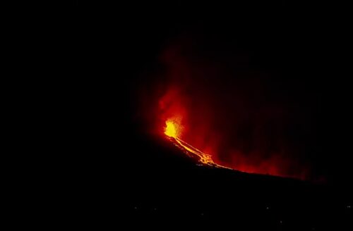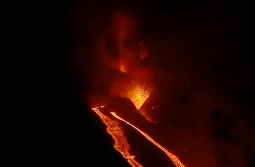Вулкан в районе Кумбре Вьеха на канарском острове Ла Пальма продолжает извержение. Сегодня ночью он сформировал