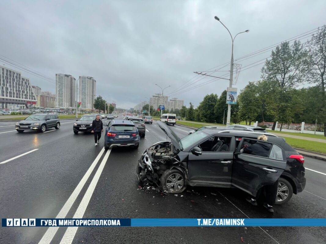 На проспекте Независимости в Минске столкнулись четыре автомобиля: Hyundai, Lada, Belgee и Citroen, сообщает УГАИ ГУВД Мингорисполкома.
