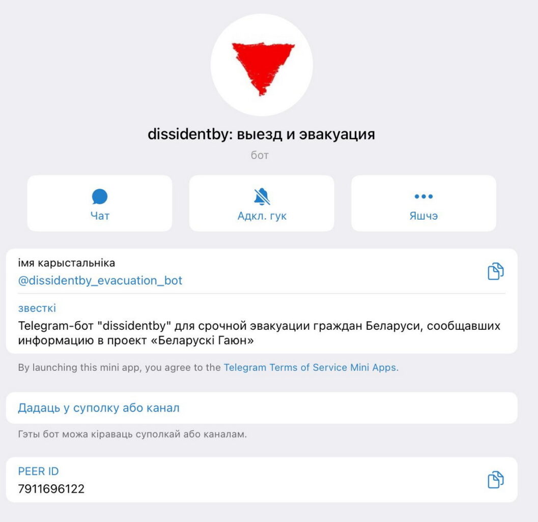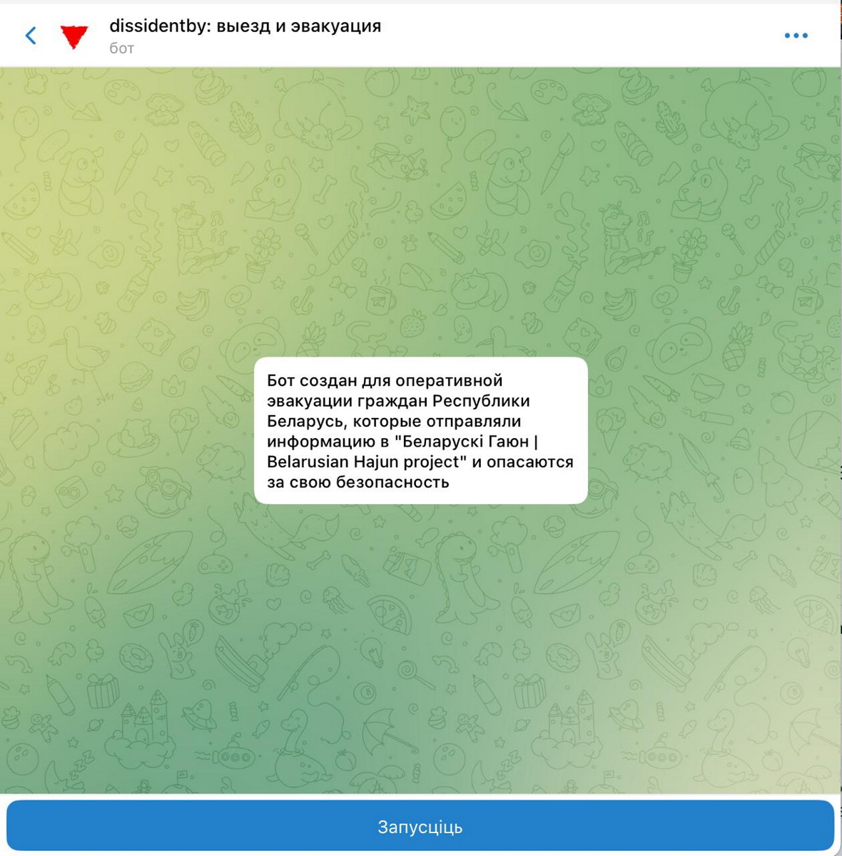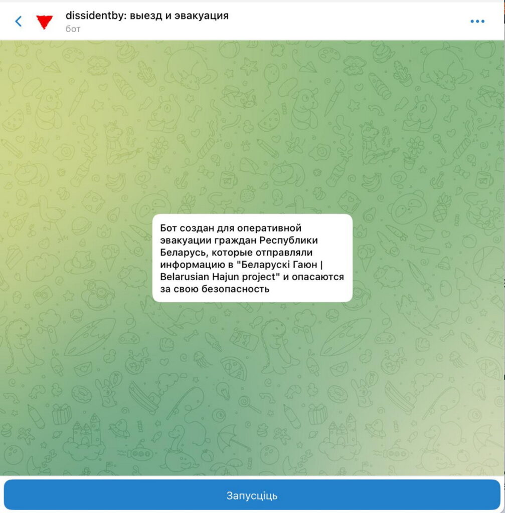 Dissidentby предупреждает о фейковом боте для эвакуации @dissidentby_evacuation_bot, созданном якобы для тех, кто отправлял информацию в мониторинговый проект «Беларускі Гаюн» . Ресурс призывает ни в коем случае не отправлять туда информацию, проверять любые аккаунты и контакты для связи.