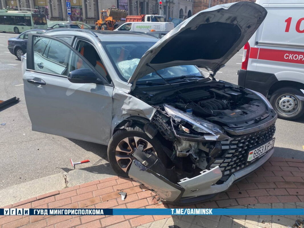 Один из инцидентов случился около 15:00. 41-летняя водитель Dongfeng, двигаясь по улице Ленина, выехала на перекресток с проспектом Независимости на красный сигнал светофора и столкнулась с Geely, который начинал движение на зеленый. От удара Dongfeng выехал за пределы проезжей части. 41-летняя пассажирка Geely доставлена в медучреждение для обследования.
