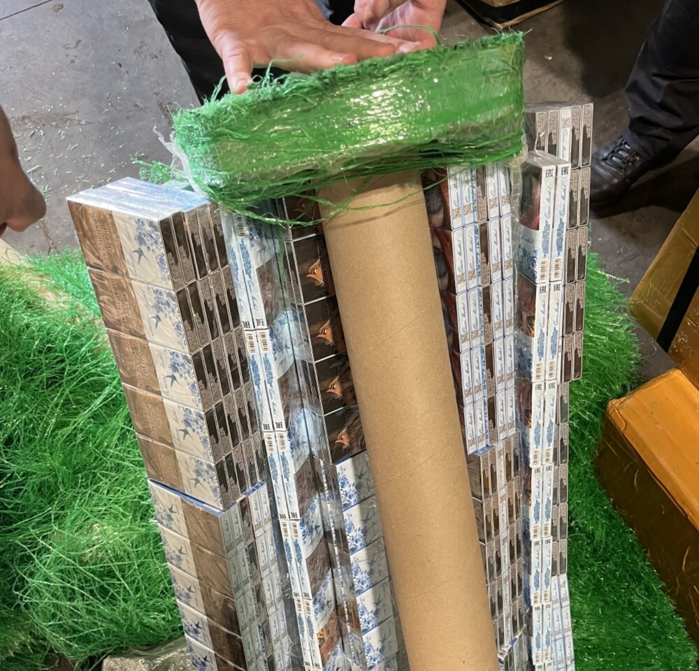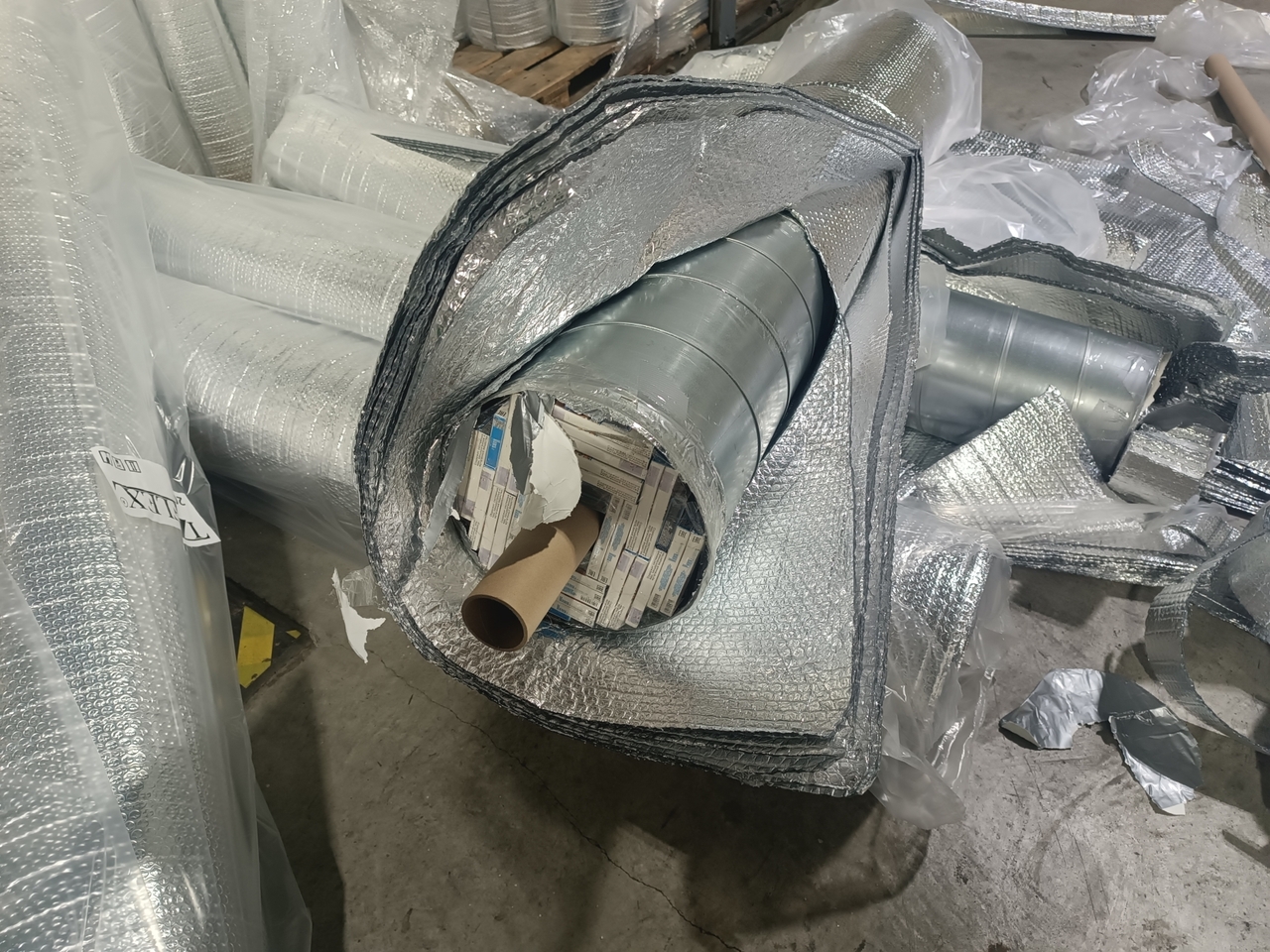 Литовские таможенники задержали два грузовика с сигаретами на беларусской границе. Они пытались пересечь границу в разные дни через разные пункты пропуска, но сигареты были спрятаны одним способом – в рулонах теплоизоляционного материала и упаковочной сетки.