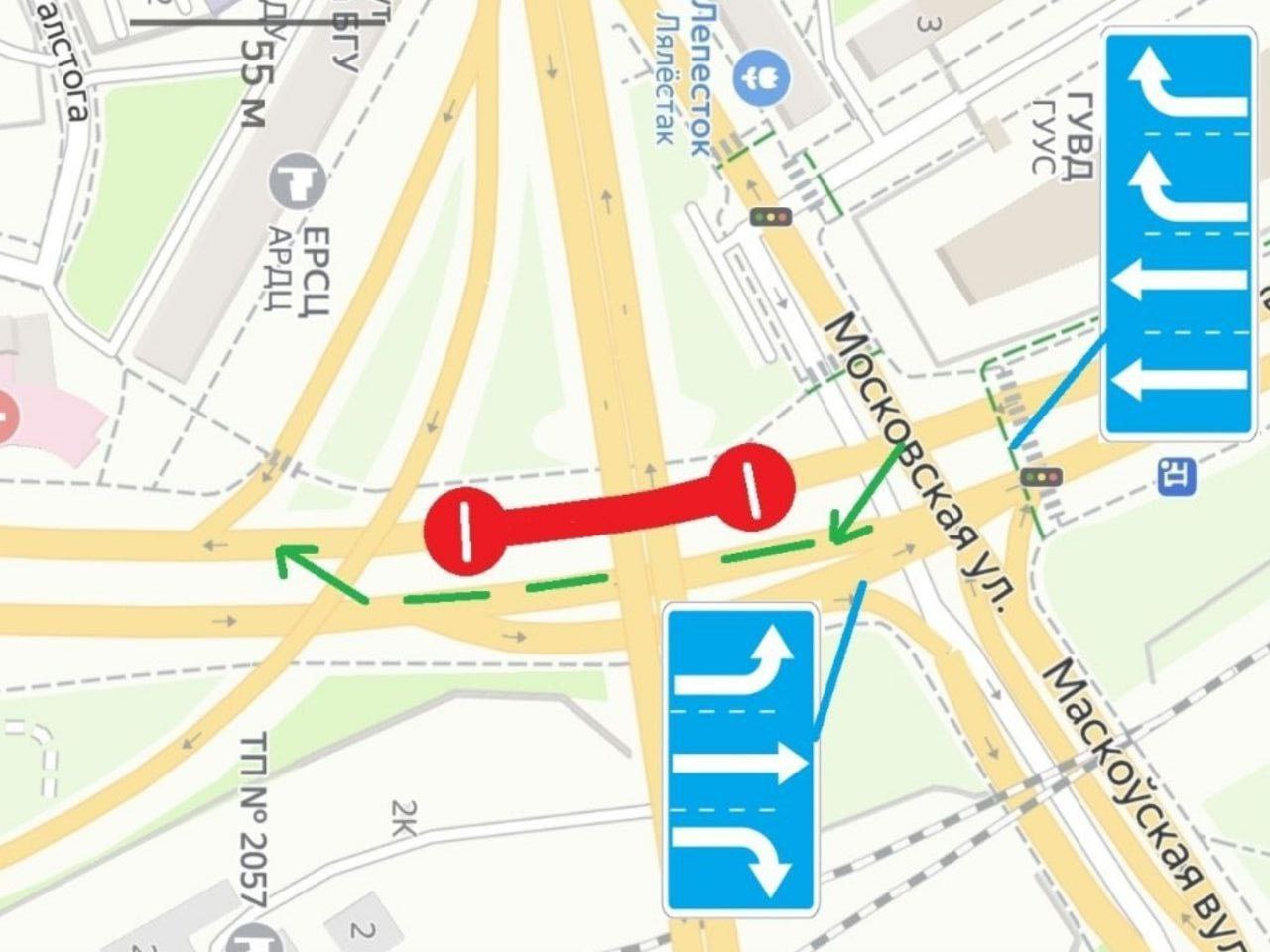 Как сообщили в УГАИ ГУВД Мингорисполкома, с понедельника движение со стороны проспекта Дзержинского в направлении улицы Вокзальной осуществляется по четырем полосам, а со стороны улицы Вокзальной в направлении проспекта Дзержинского осуществляется под путепроводом по трем полосам.