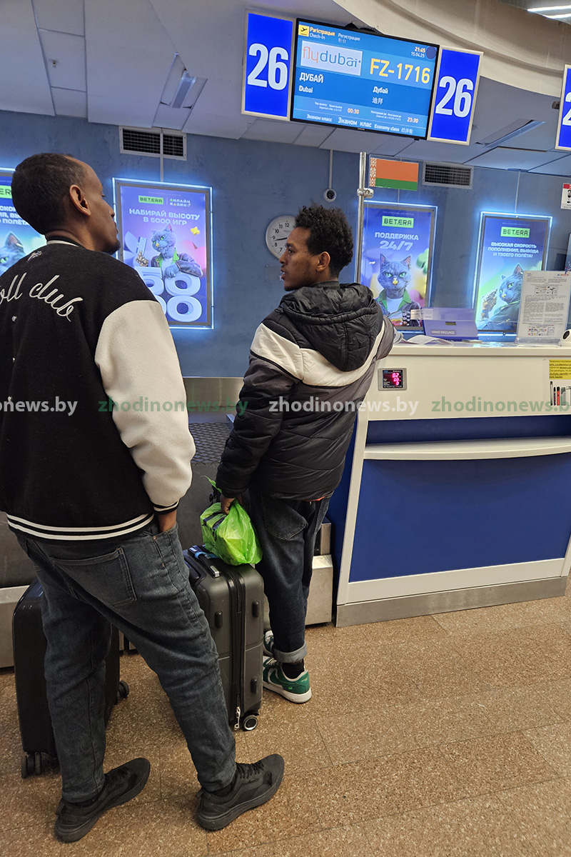Двух студентов из Эфиопии выдворили из Беларуси, посадив на рейс «Минск — Дубай, Дубай — Аддис-Абеба» в ночь с 15 на 16 апреля. Их сопровождение в Национальный аэропорт «Минск» организовали сотрудники отделения по гражданству и миграции Жодинского ГОВД. В 0:30 16 апреля они улетели на родину.