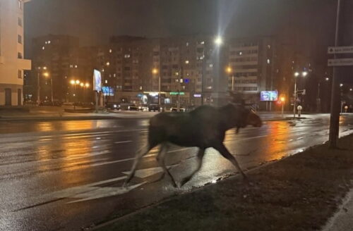 A moose was spotted roaming Minsk at night. Photos of the wild animal were published by the Telegram