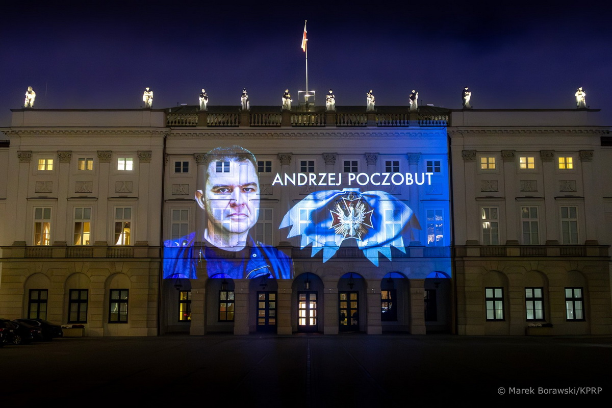 A projection of a photo of political prisoner and journalist Andrzej Poczobut appeared on the Presidential Palace in Warsaw. The image was published by the Chancellery of the President of Poland.
