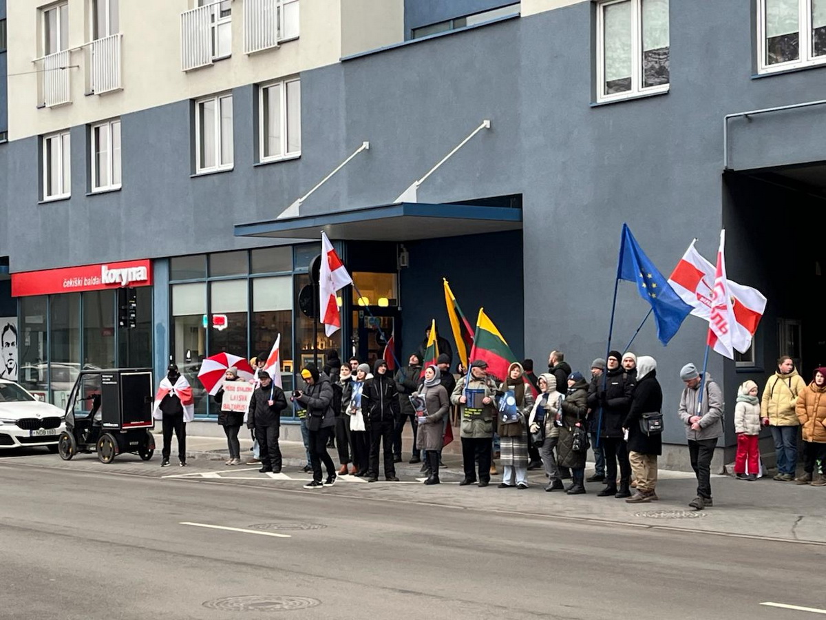 A protest against the regime’s hybrid attacks took place today near the Belarusian Embassy in Vilnius, the Office of Sviatlana Tsikhanouskaya reported. Participants said that the aggressive policy of Alyaksandr Lukashenka does not reflect the position of the Belarusian people.