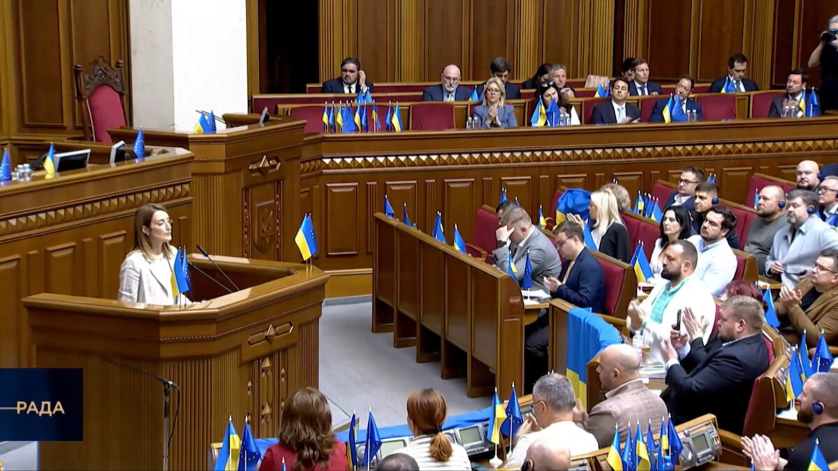 Европарламент открывает постоянное представительство в Киеве. Об этом заявила, выступая в Верховной Раде Украины председатель ЕП Роберта Метсола. Сегодня она прибыла в украинскую столицу на фоне атаки РФ по железнодорожной инфраструктуре.