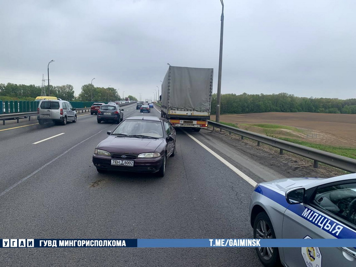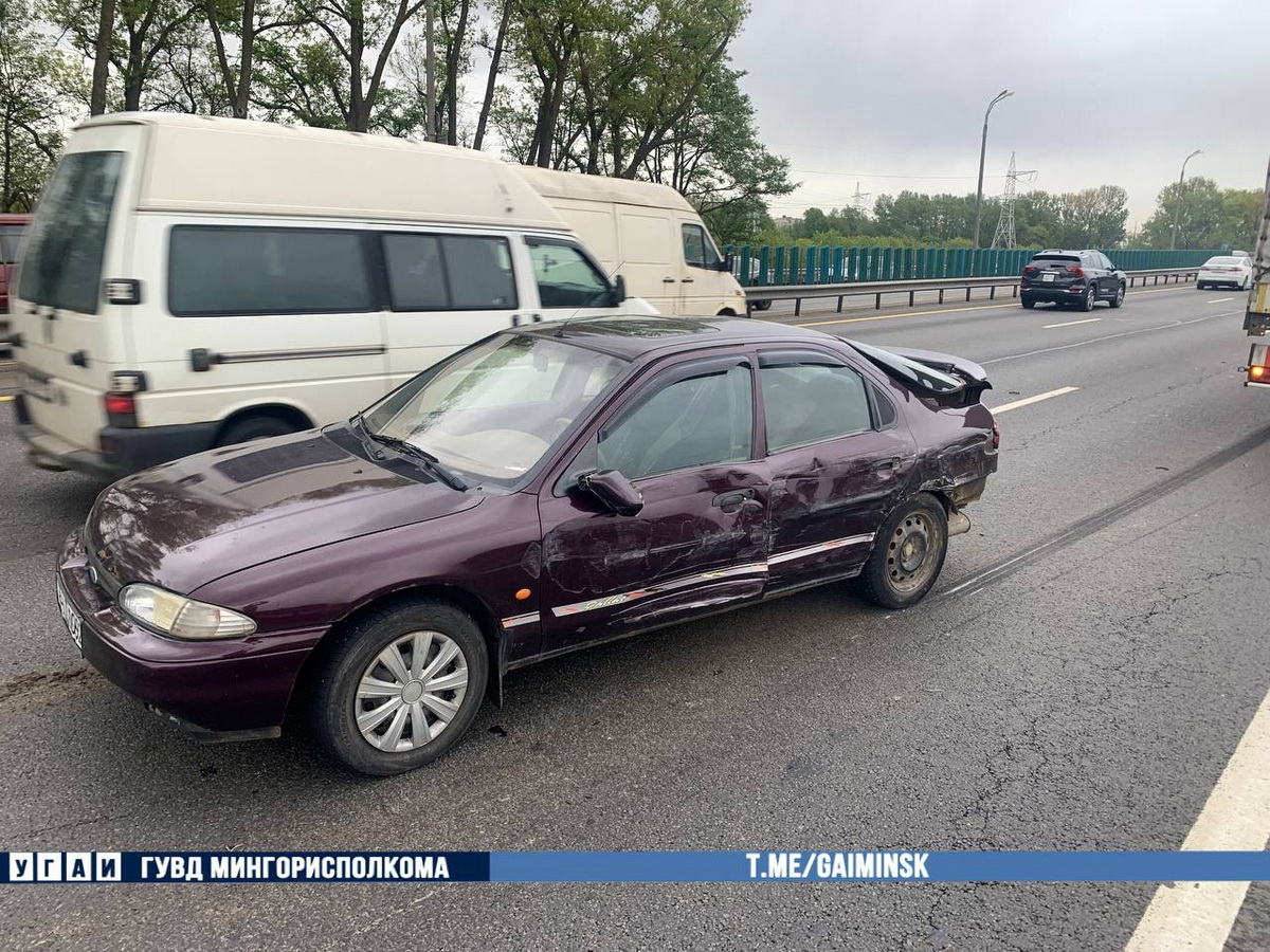Фура и легковушка столкнулись на внешнем кольце МКАД, сообщает УГАИ ГУВД Мингорисполкома. ДТП произошло сегодня около 16:50 . 55-летний водитель Ford при перестроении не убедился в безопасности своего маневра, в результате чего совершил столкновение с двигавшимся попутным грузовым Mercedes.