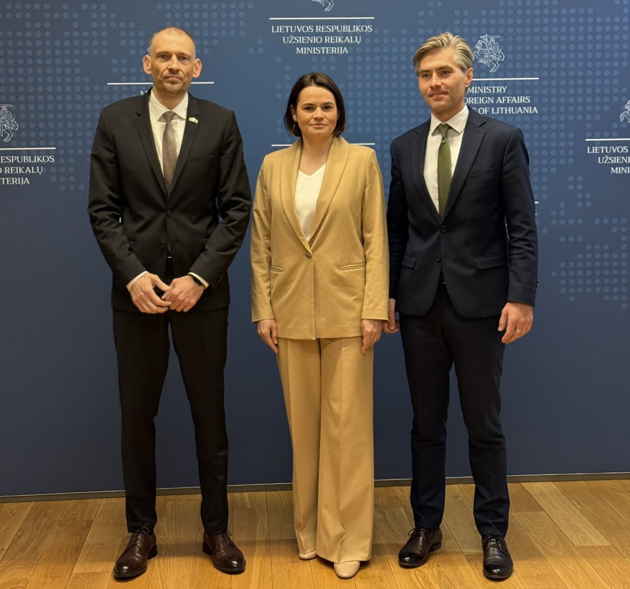 Министр иностранных дел Литвы Кястутис Будрис встретился со Светланой и Сергеем Тихановскими и призвал освободить всех беларусских политзаключенных.