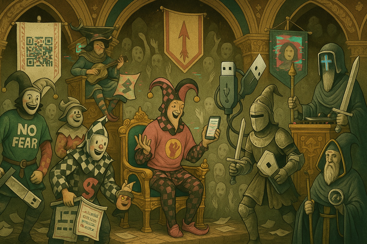 Нас догнал старый/новый феодальный разброд. С раздробленной на части нацией, условной центральной властью, ментальным иллюзионом, медийными ересями и политическими культами, страхом мобильности и хронической недоученностью, поиском пророков и травлей неформата, говорящими попугаями и безъязыким народом, сакрализацией власти и постоянным ожиданием Апокалипсиса. Сюжет сдох. Управлять нечем. И потому фатально смешны управленцы.