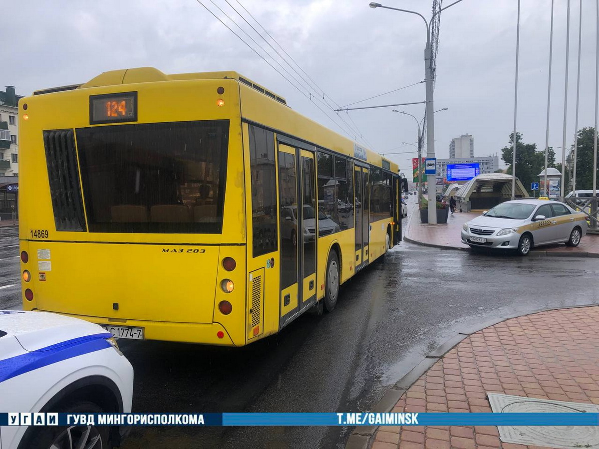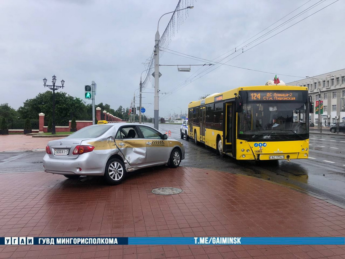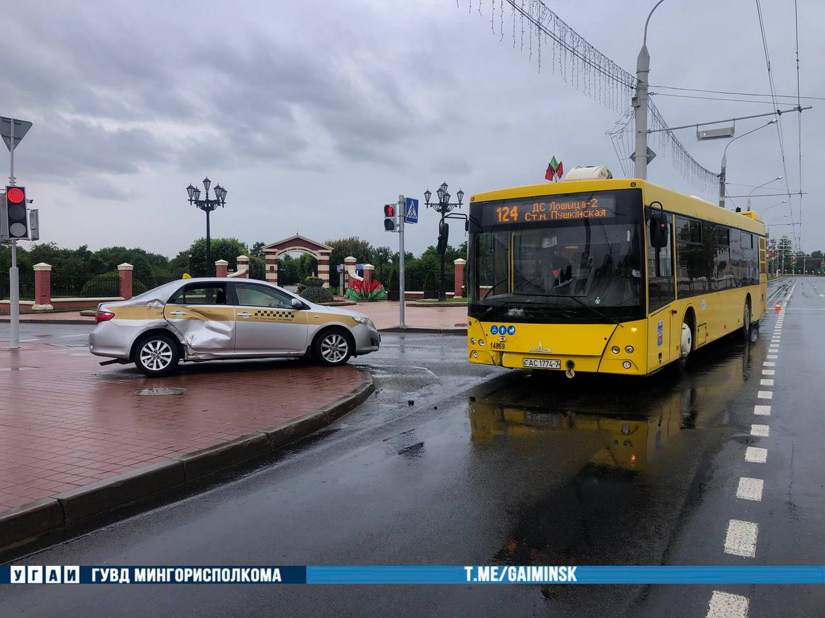 Городской автобус №124 столкнулся с легковушкой в Минске, сообщает УГАИ ГУВД Мингорисполкома. ДТП произошло сегодня около 14:40 на перекрестке с местным проездом здания №129 по улице Маяковского.