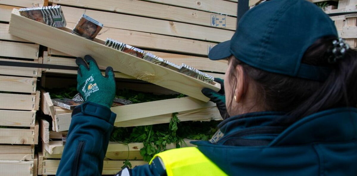 Автомобиль отправили на рентгеновское сканирование. Обнаружилось, что в специально подготовленных ящиках с петрушкой находились сигареты. Работники налоговой службы извлекли из них почти 50 тыс. пачек сигарет с беларусскими акцизными марками. К осмотру грузовика также привлекали служебную собаку, обученную находить табачные изделия.