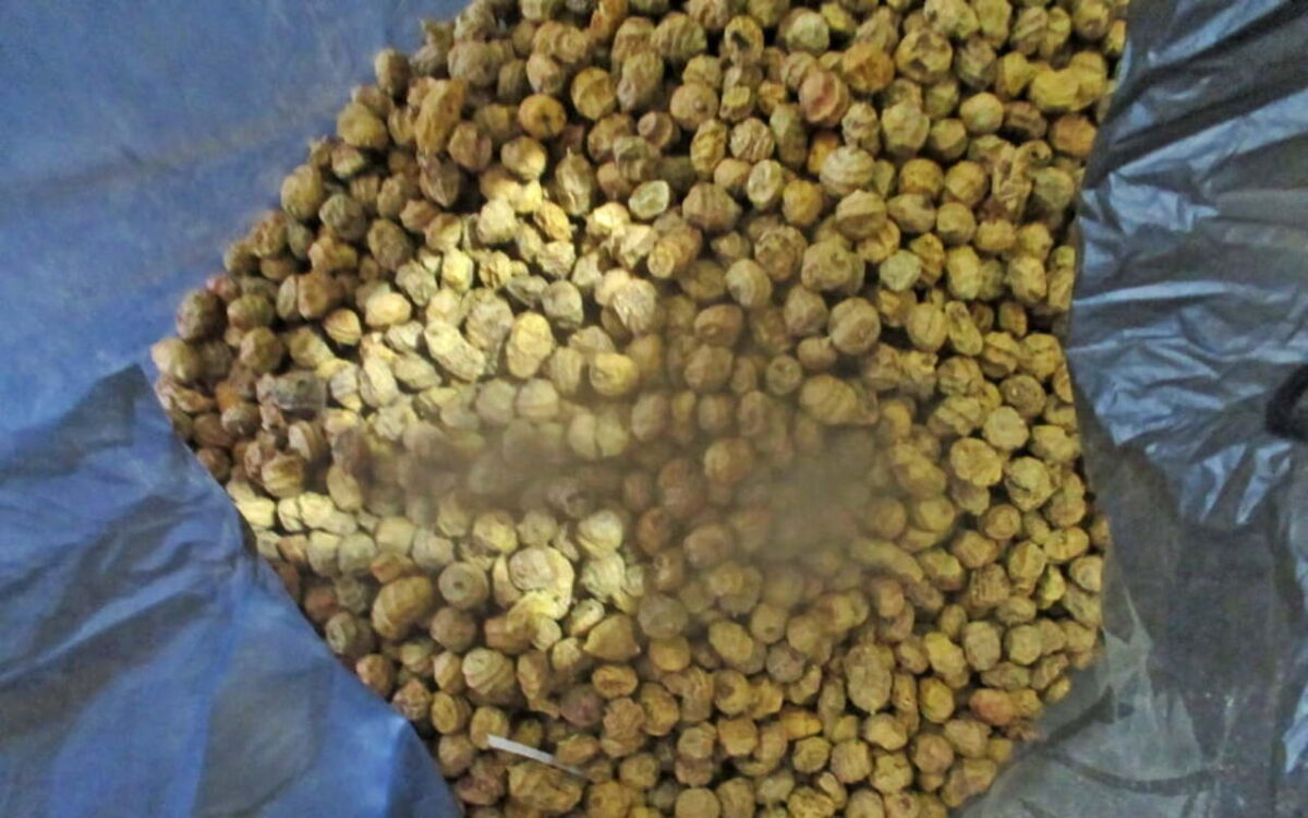 Автомобиль остановили в Смоленской области России. Водитель предъявил документы на перевозку пенополистироловых плит, но за первыми рядами плит оказались 80 мешков чуфы. Это растение еще называют съедобной сытью, земляным миндалем или тигровым орехом.