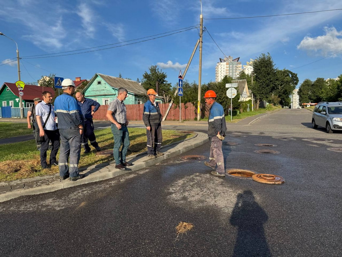 На улице Центральной случилось повреждение трубопровода, в результате чего из дороги забил фонтан. ЧП произошло при плановом проведении гидравлических испытаний Минскими тепловыми сетями во время отключения горячей воды для подготовки к осенне-зимнему периоду.