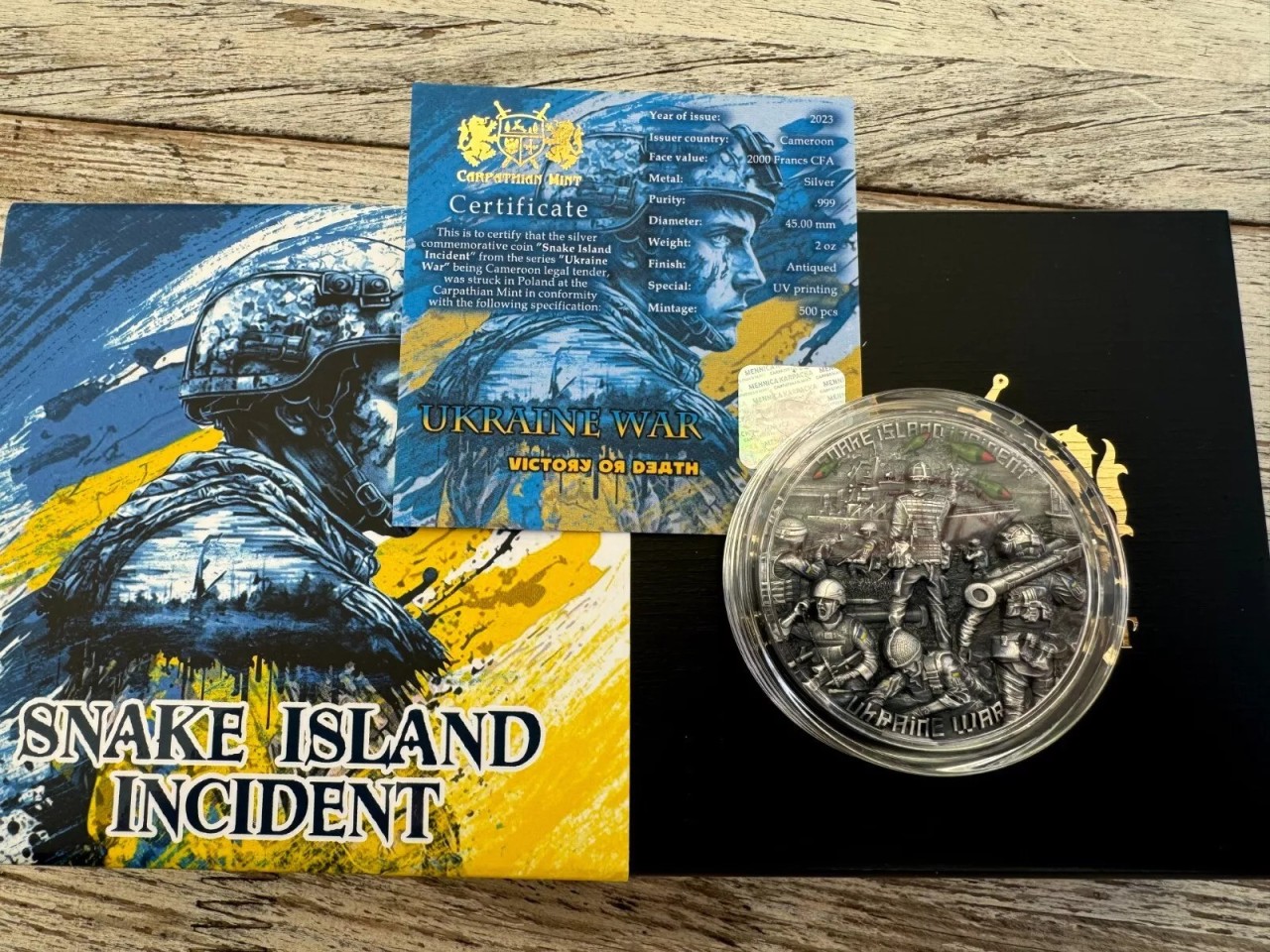 В него вошли книга «Забойства на вулiцы Макаёнка» (автор Клёк Штучны) – детектив, действие которого происходит в Минске в 2022 году, а также камерунская коллекционная монета Snake Island Incident из серии Ucrain War (год выпуска – 2023).