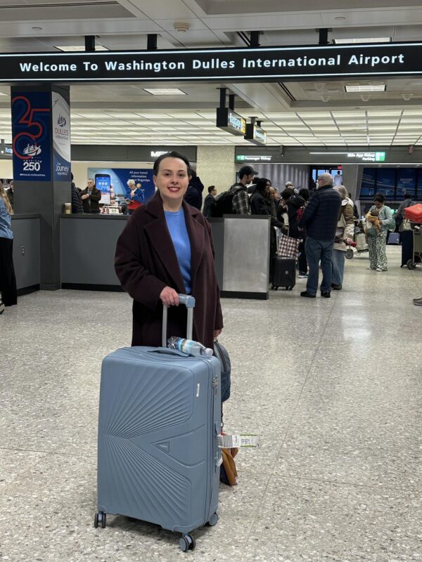 «Вашингтонщина встретила дождиком и плюсовой температурой. В среду до +16», — прокомментировала она свое фото из аэропорта.