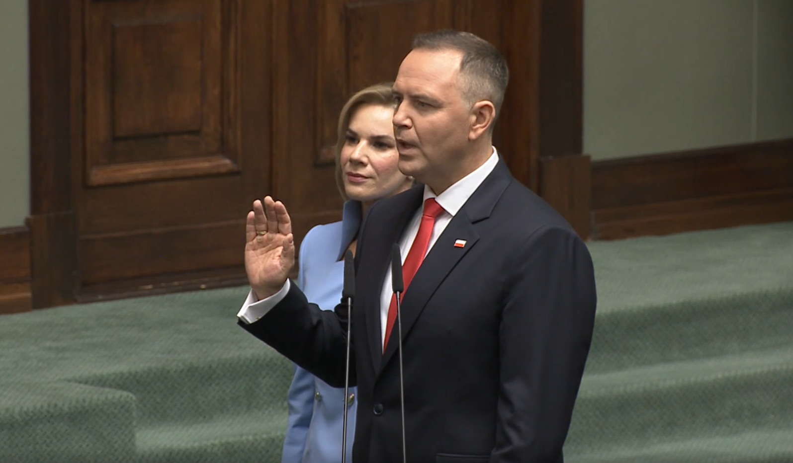 «Подтверждаю, что президент Республики Польша Кароль Тадеуш Навроцки принес присягу, предусмотренную статьей 130 Конституции Республики Польша», — сказал маршалок Сейма Шимон Головня.