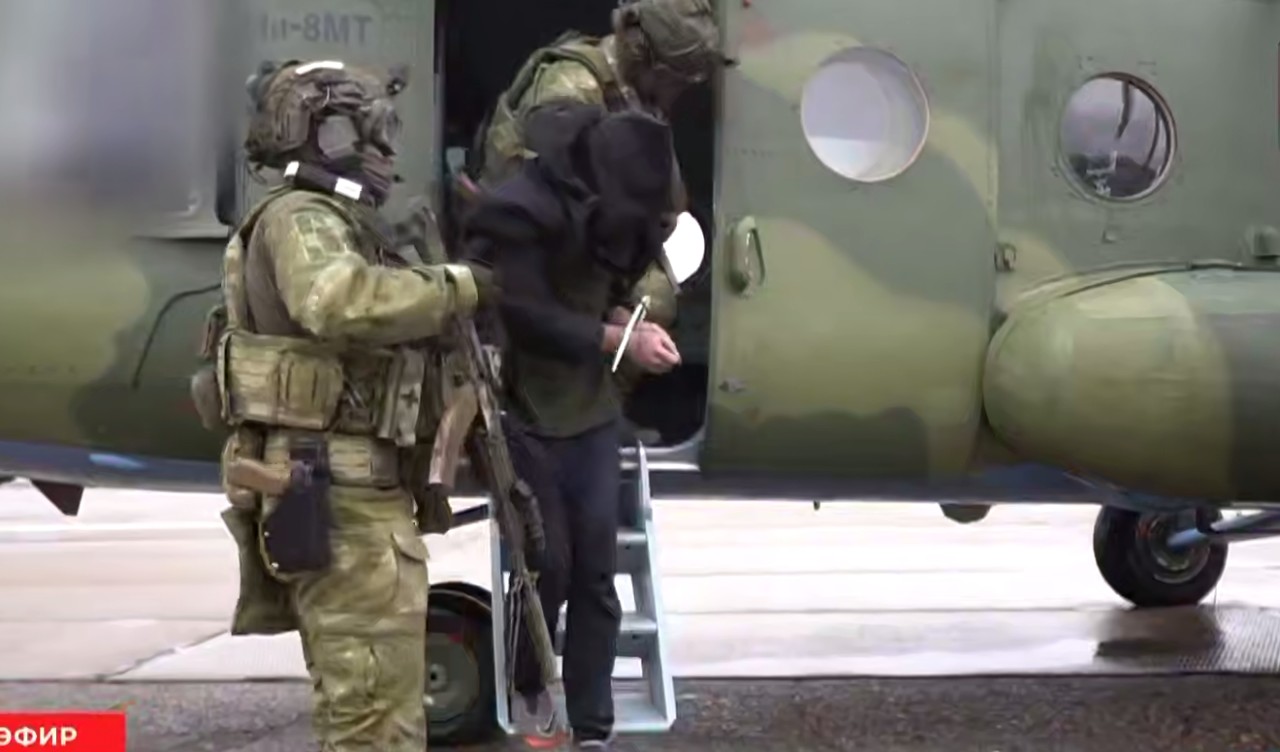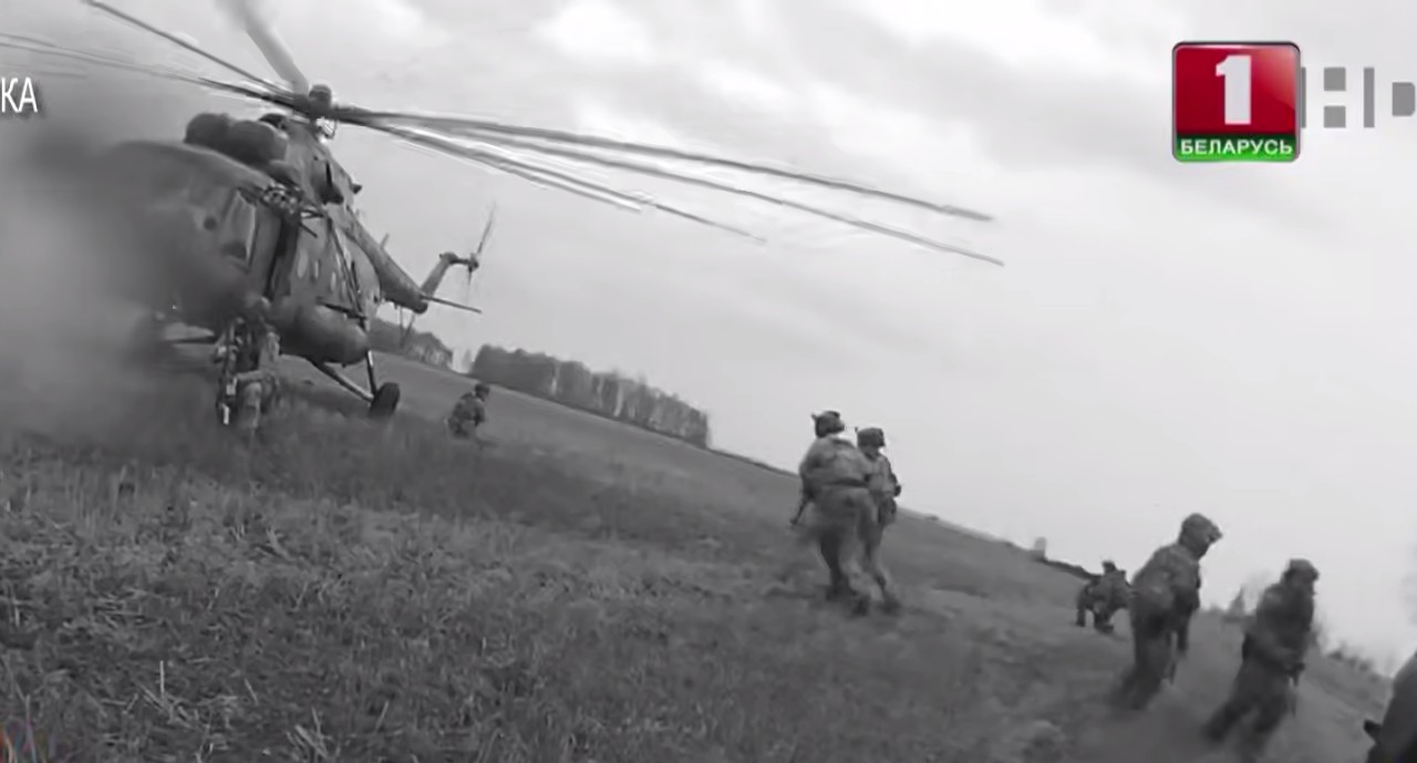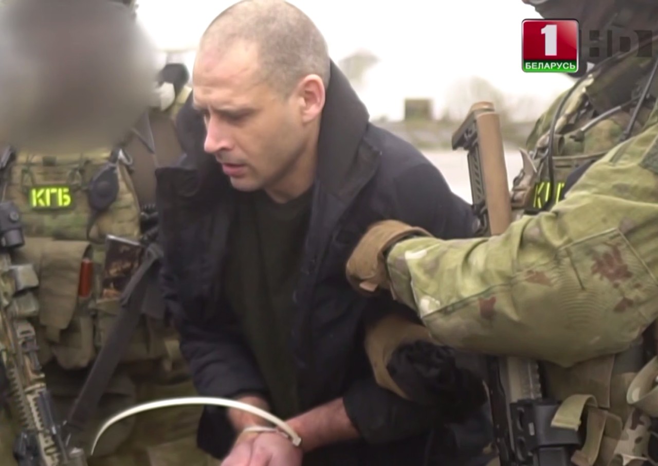 На видео Гречиху со стяжкой на руках и пакетом на голове ведут по болоту трое вооруженных людей в камуфляже. Где произошло задержание – неизвестно. На машине Гречиху привозят к военному вертолету и передают сотрудникам КГБ. Во время перелета Гречиха лежит на полу, сотрудник КГБ придавливает его ногой к полу. На выходе из вертолета его встречает Константин Бычек, начальник следственного управления КГБ.