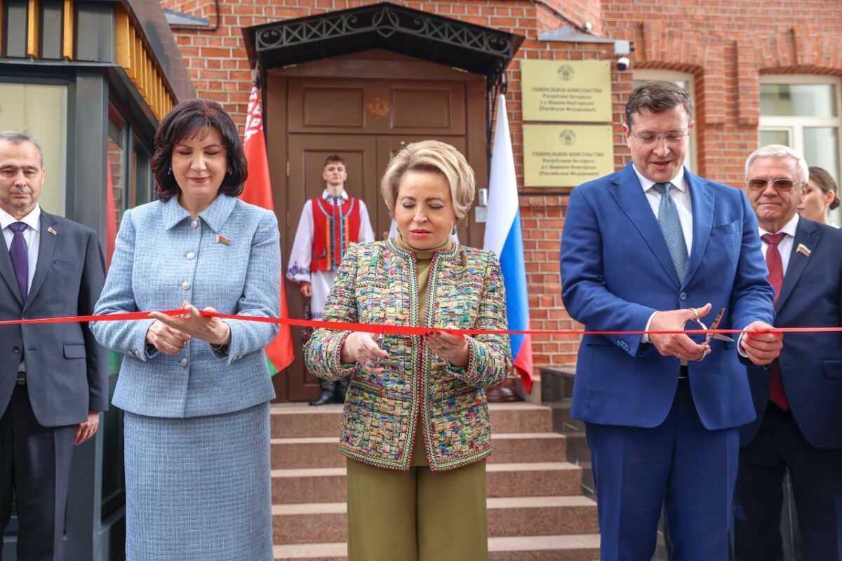 Сегодня в Нижнем Новгороде отрыто генконсульство Беларуси. Оно расположилось в Нижегородском кремле. В церемонии открытия приняли участие председатель Совета Республики Наталья Кочанова и председатель Совета Федерации Валентина Матвиенко, передает БелТА.