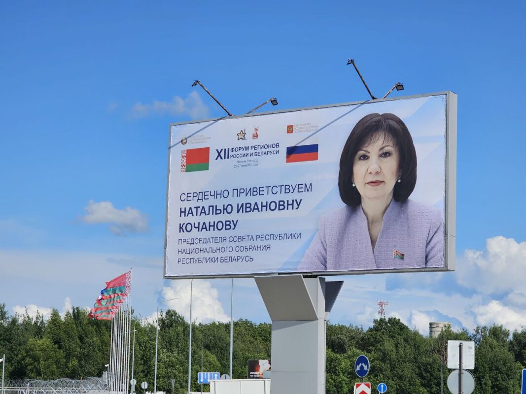 Пресс-служба Совета Республики похвасталась уровнем приема своего руководителя на XII Форуме регионов России и Беларуси в российском Нижнем Новгороде. Для Натальи Кочановой установили персональный билборд с приветствием.