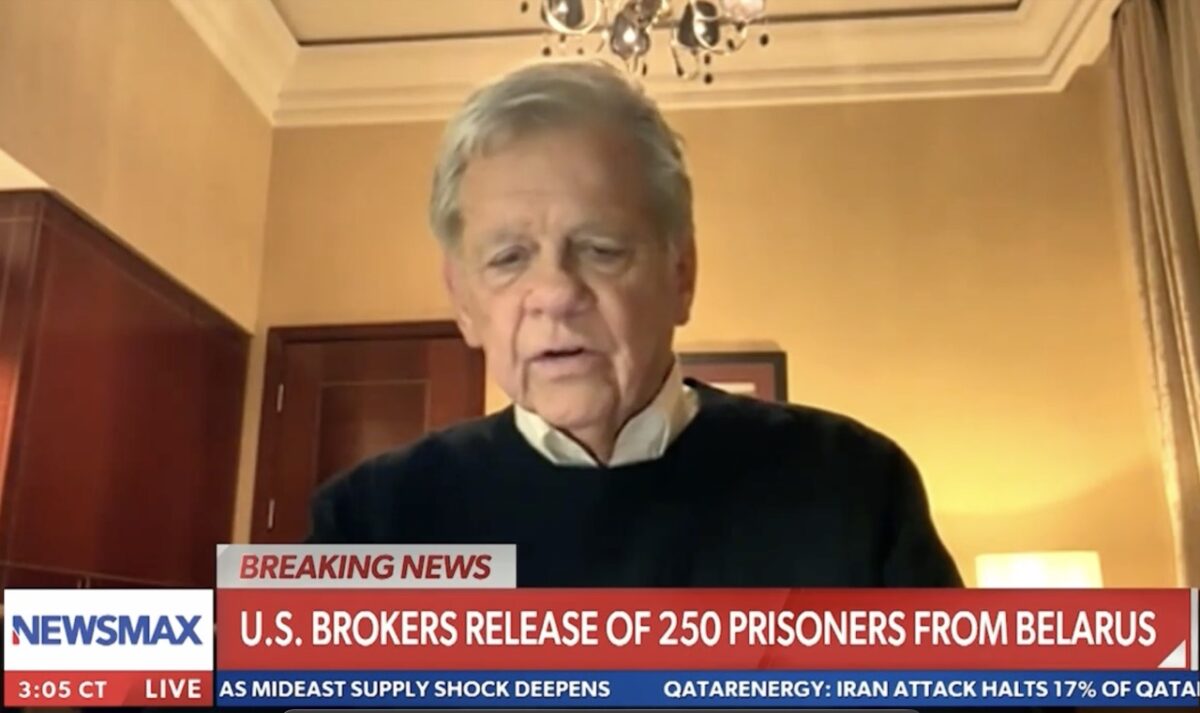 Спецпосланник президента США по Беларуси Джон Коул считает, что к концу года удастся освободить всех политзаключенных в Беларуси. Об этом он заявил в интервью своей жене Грете ван Сустерен на телеканале Newsmax.
