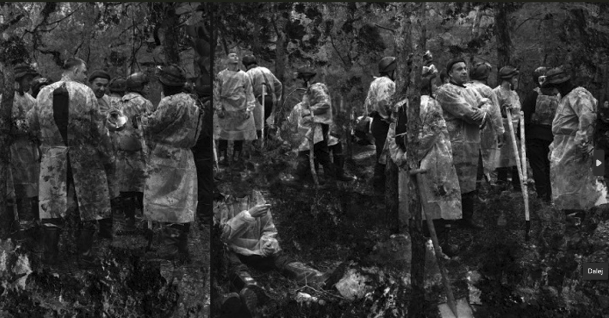 Праца адлюстроўвае эксгумацыю ўкраінцаў, пакараных расійскімі акупантамі ў Ізюме на Харкаўшчыне.