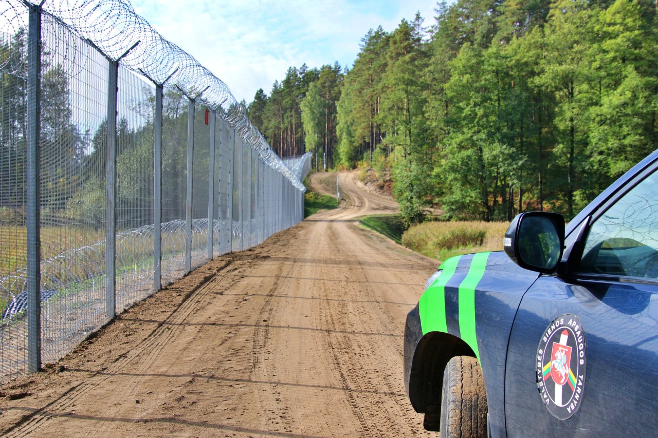 Недалеко от них, в глубине литовской территории, установлен физический барьер – забор с колючей проволокой (концертиной), предназначенный для защиты от нелегальной миграции.
