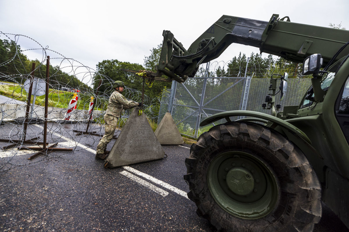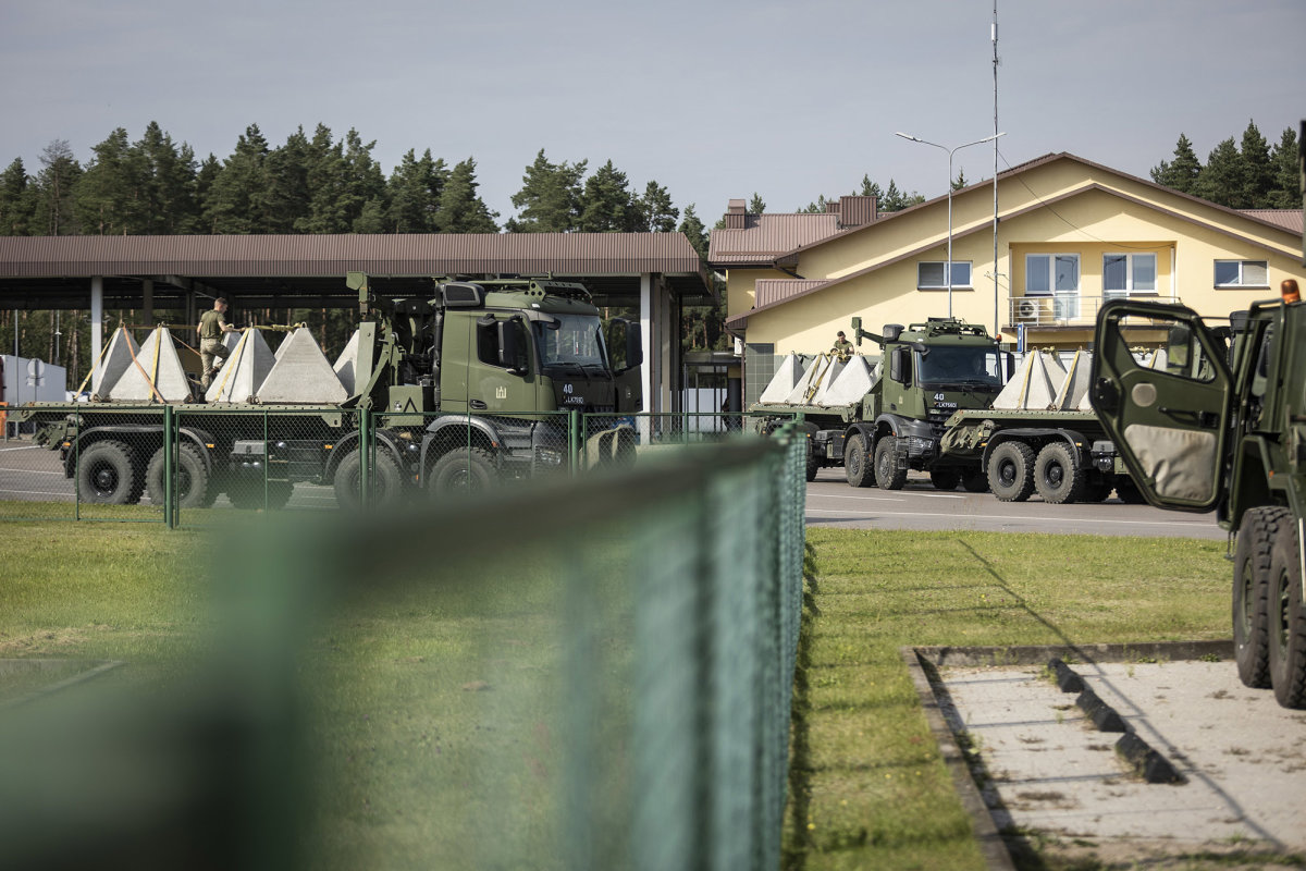 Военнослужащие инженерного батальона Юозаса Виткауса на прошлой неделе установили дополнительные заграждения для укрепления пограничной безопасности Литвы. Речь идет о «зубах дракона» — противотанковых препятствиях из железобетона. Они размещены на ряде неиспользуемых контрольно-пропускных пунктов на границе с Беларусью и Россией.