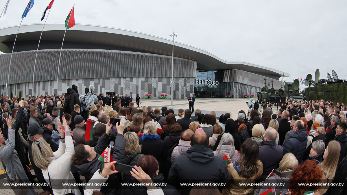 Он назвал выставочный центр новой страницей летописи страны. Его выставка должна быть постоянно действующей, чтобы демонстрировать то, чего достигла Беларусь. Лукашенко назвал центр подарком к юбилею Победы. По его словам, многое во время строительства приходилось осваивать впервые: от конструкций кровли до инженерных коммуникаций. Летом в центре планируют провести Евразийский экономический форум.