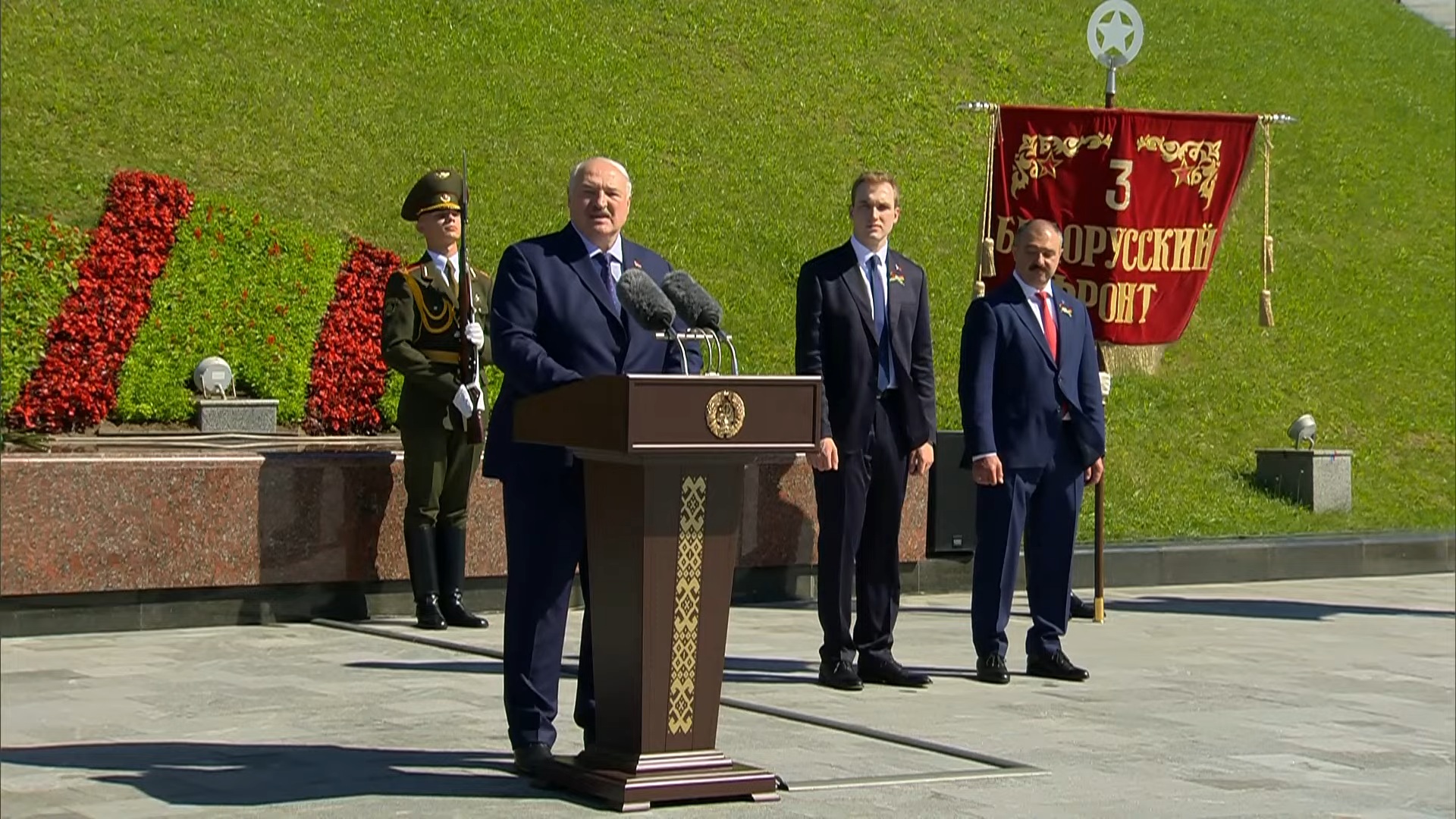 Лукашенко отметил символичность того, что День независимости отмечается в день освобождения Минска от немецко-фашистских захватчиков во время ВОВ. Он подчеркнул, что так беларусы отдают «дань памяти тем, кто пал смертью храбрых за наше мирное настоящее».