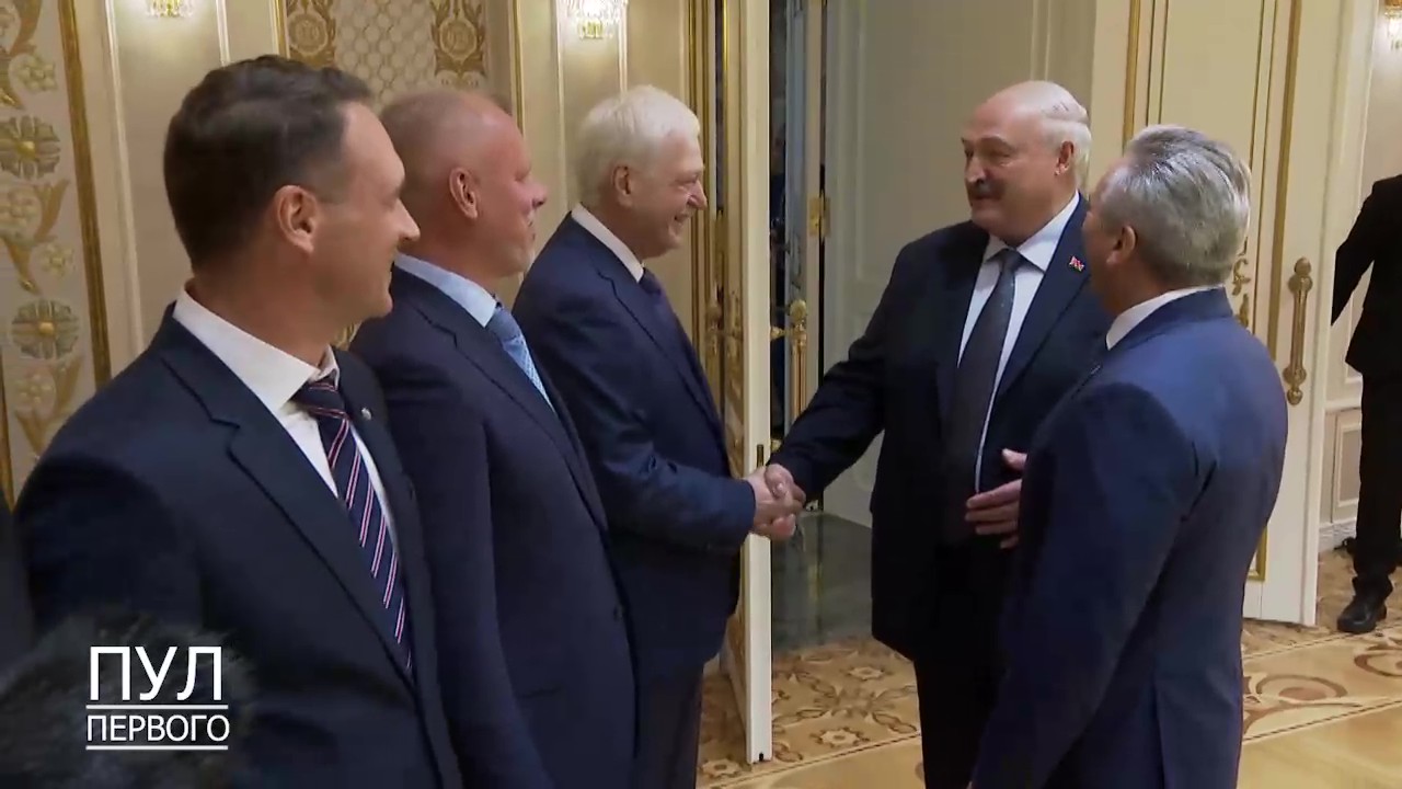 «Привет от Владимира Владимировича, вчера с ним разговаривал. Говорит что — я ему говорю, что с тюменцами встречаюсь, губернатором — ну это богатая область», — обратился Лукашенко к Грызлову.