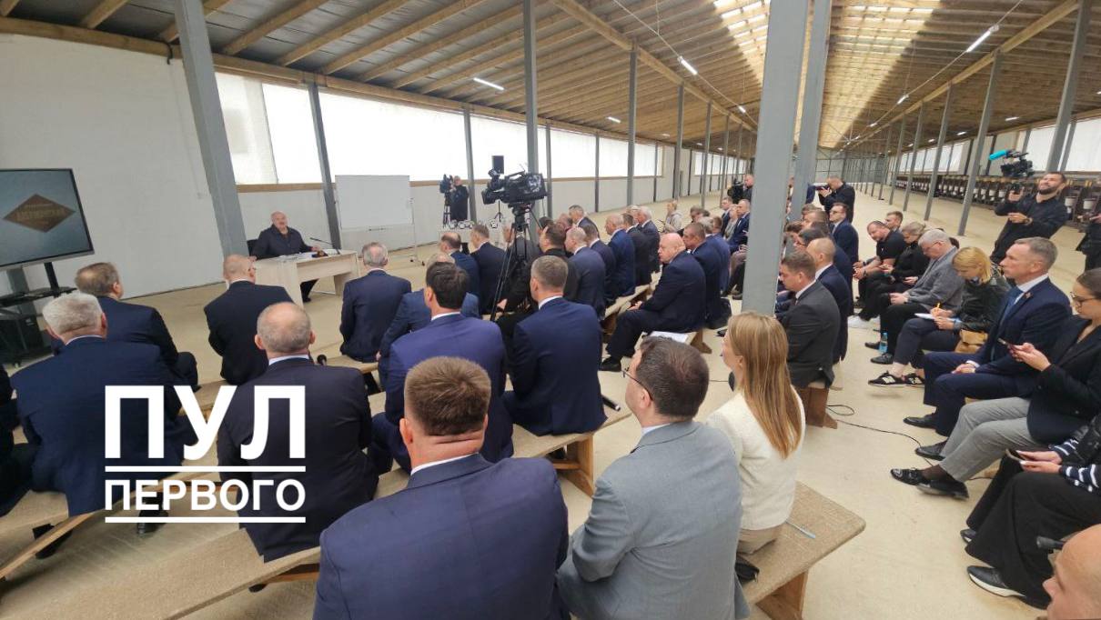 Александр Лукашенко проводит совещание в коровнике. Фото: "Пул первого"