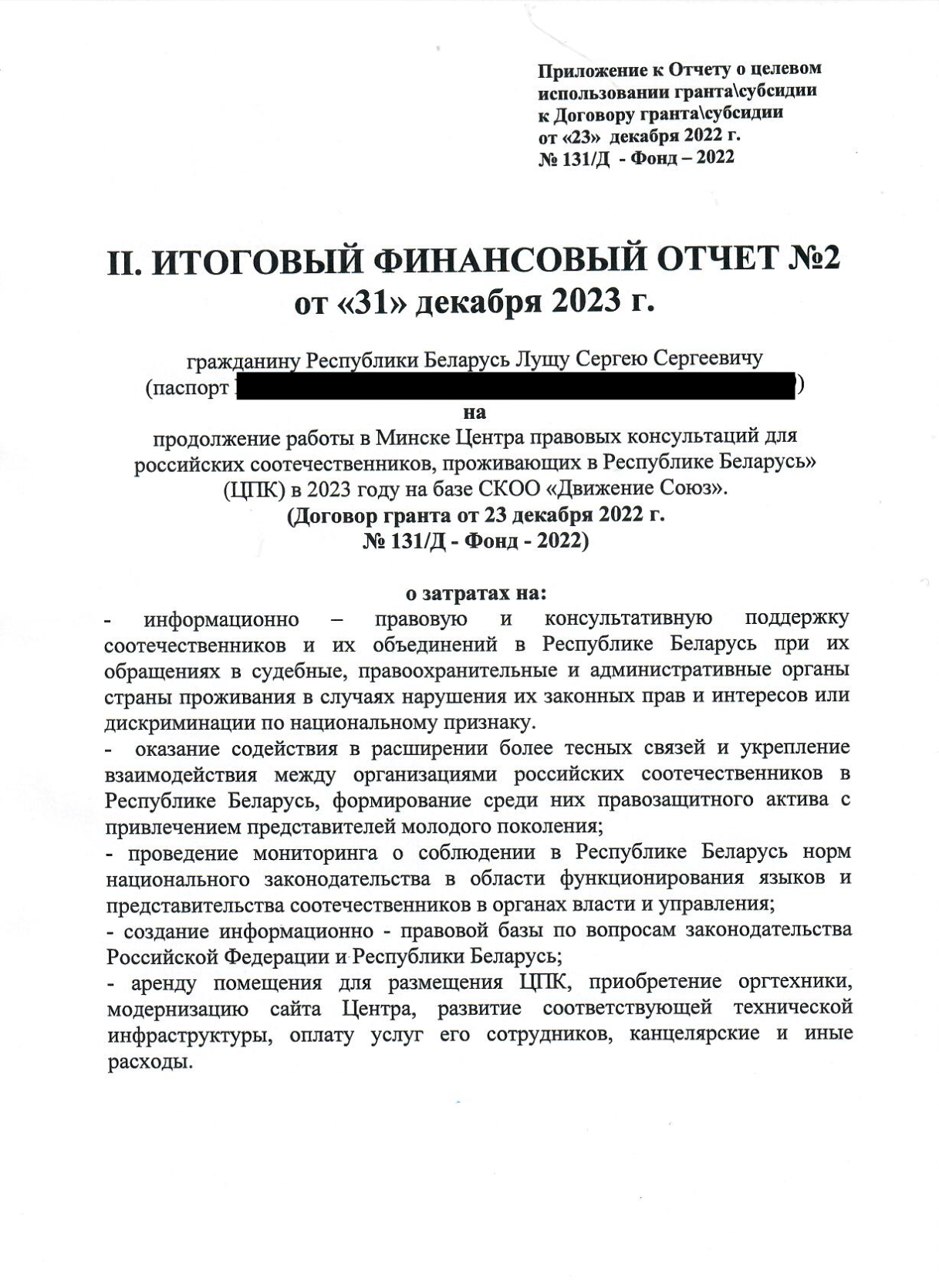 Так, на запуск Центра правовых консультаций в Минске кремлевские кураторы выделили более 60 тысяч долларов. Эту структуру создал маргинальный пророссийский активист с неонацистским прошлым Сергей Лущ. Получателем гранта в документах указана еще одна организация, которую соучредил и возглавил Лущ – ассоциация «Содействие развитию интеграции, международного социально-культурного и делового сотрудничества».