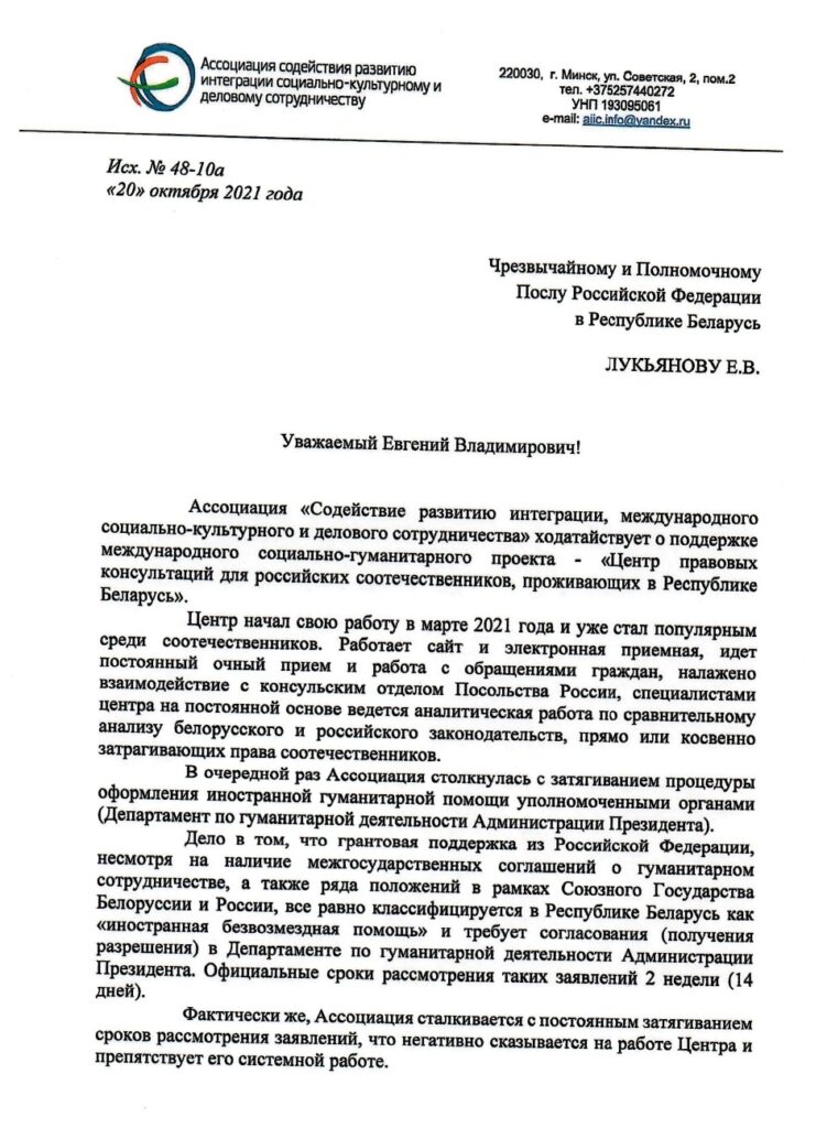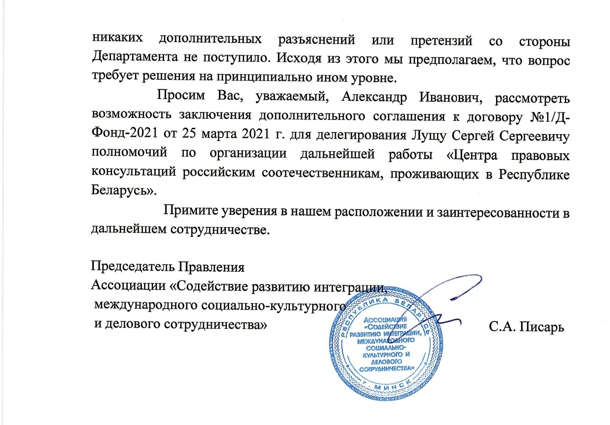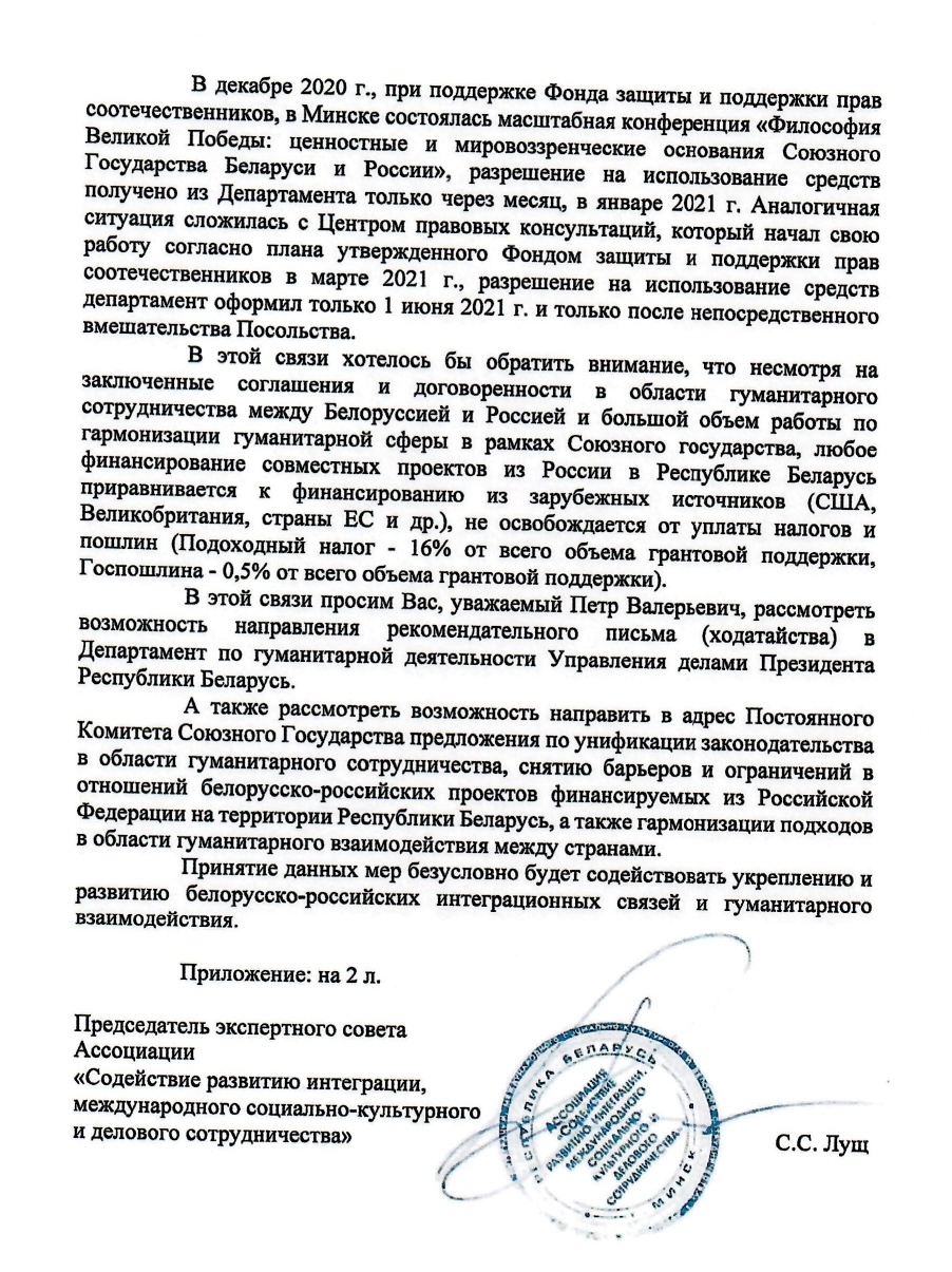 У Луща возникли проблемы с Департаментом по гуманитарной деятельности Администрации Лукашенко. Он пожаловался российскому послу Лукьянову.