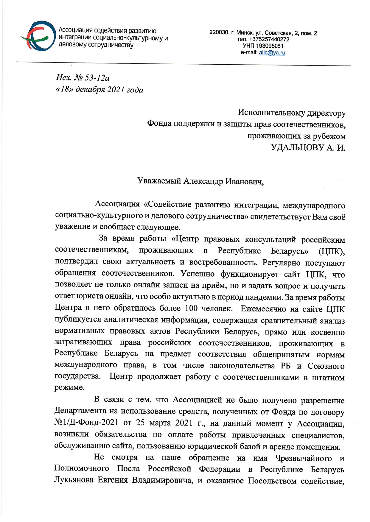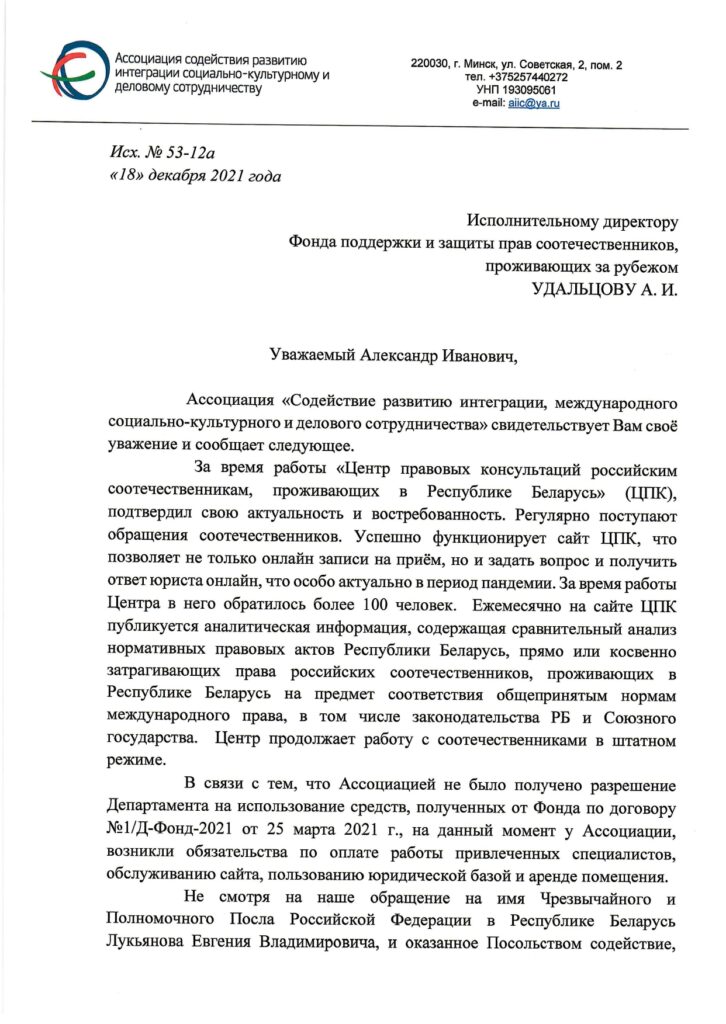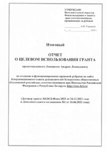 Глава Центра правовых консультаций получал от «Правфонда» деньги на проведение пропагандистских мероприятий. К примеру, в ноябре 2022 года в Минске он провел круглый стол «Право на историческую память», чтобы «противодействовать попыткам фальсификации истории» про Вторую мировую войну. В мероприятии участвовали около 30 человек, среди которых: директор «Правфонда» Александр Удальцов, старший советник посольства России в Беларуси Станислав Макаренко, беларусские и российские пропагандисты Алексей Дзермант, Петр Петровский, Николай Межевич и другие. Организация круглого стола обошлась почти в шесть тысяч долларов.