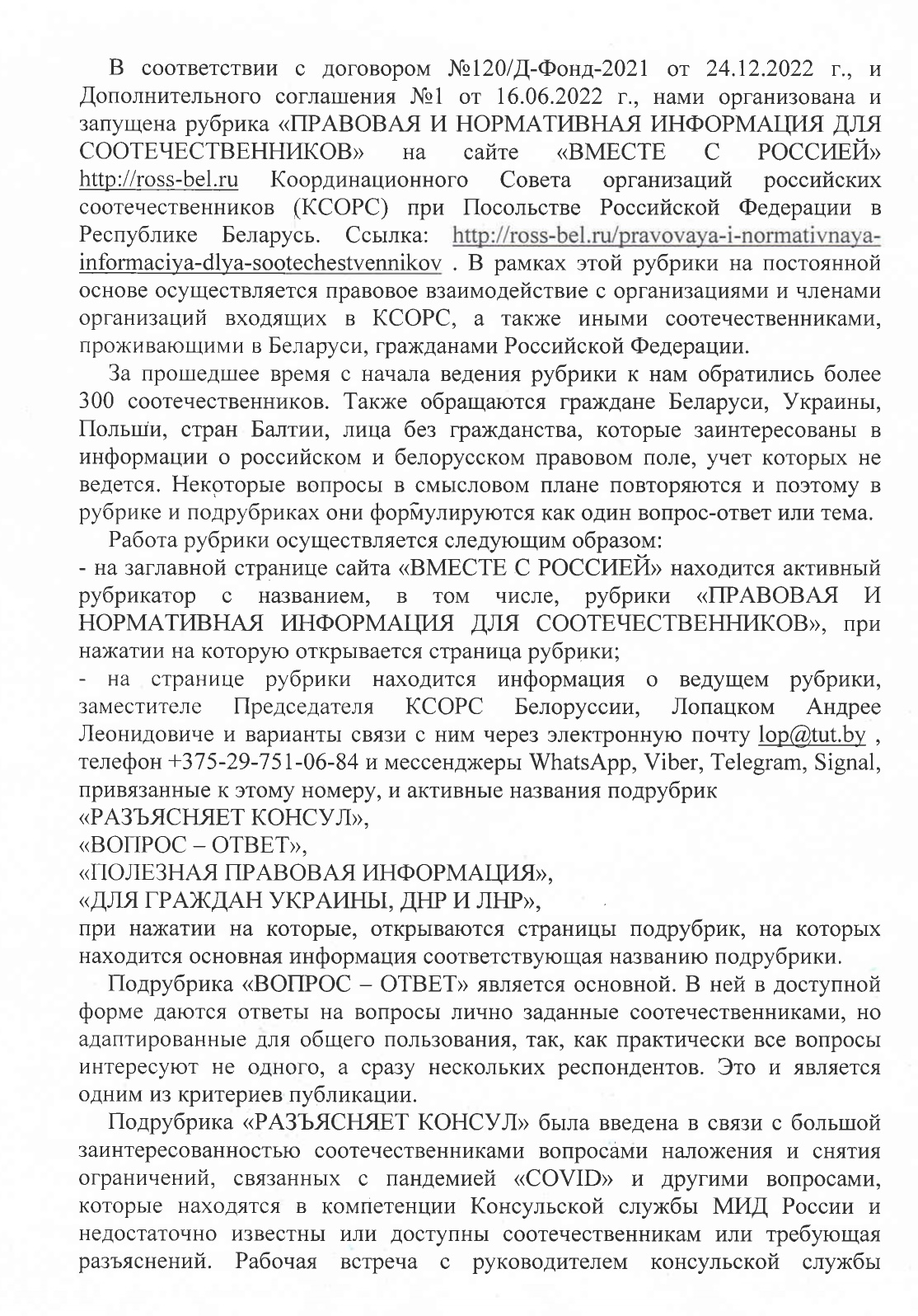В 2022 году кремлевский фонд выделил около 10 тысяч долларов на запуск правовой рубрики на сайте КСОРС. Заявку на грант подавал заместитель председателя КСОРС, юрист Андрей Лопацкий. Этот уроженец Севастополя учредил в Беларуси социально-культурный центр «Крымское землячество».