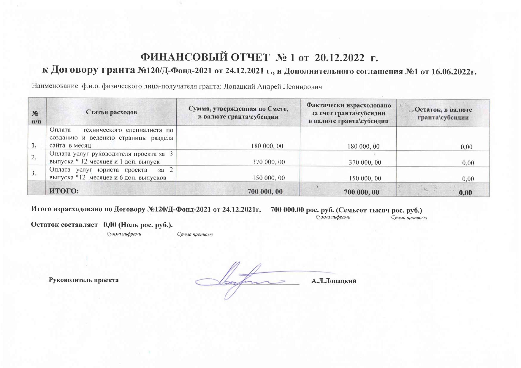 В 2023 году Лопацкий запросил у «Правфонда» в два раза больше денег на продолжение работы правовой рубрики сайта.