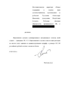 «Правфонд» компенсировал Мирсалимовой штраф, а также услуги адвоката. Грант на 1100 долларов получил муж активистки Дмитрий Рубаник на свой счет в российском «Тинькофф банке».