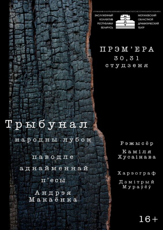 30 і 31 студзеня Магілёўскі абласны драматычны тэатр прадставіць прэм’еру спектакля паводле знакамітай трагікамедыі Андрэя Макаёнка «Трыбунал». Рэжысёрка Каміля Хусаінава істотна перапрацавала класічны тэкст, дадаўшы ў яго «хронікі вайны» і новых персанажаў. Але жанр пастаноўкі акрэсліваецца як «народны лубок».