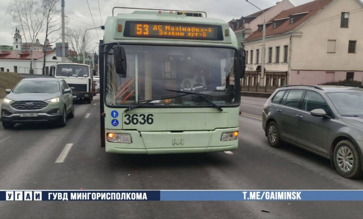 В Минске произошло ДТП с участием маршрутки и троллейбуса. По версии ГАИ, водитель маршрутки при перестроении не убедился в безопасности своего маневра, в результате чего произошло столкновение.