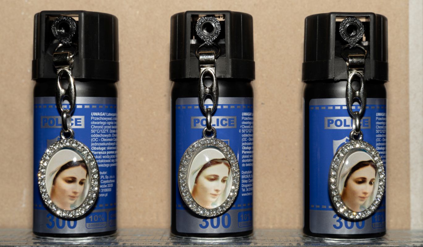 З вонкавага боку гэтага пакоя размешчаны шэраг аб’ектаў з пярцовым балончыкам, спалучанага з бірулькай у форме слязы з выявай Маці Божай. Праз гэтыя прадметы мастак каментуе сістэмы, якія пад выглядам клопату кантралююць эмоцыі і ствараюць адчуванне камфорту, то-бок зніжаюць трывогу замест вырашэння праблемы. У гэтым кантэксце форма слязы ўказвае на момант, калі цела рэагуе хутчэй за свядомасць, адкрываючы праўду пра сістэму, якая хоча нас абараніць, але спачатку гвалціць.