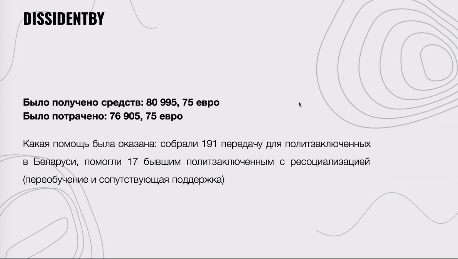 - Dissidentby: получено — 80 995,75 евро, потрачено — 76 905,75 евро