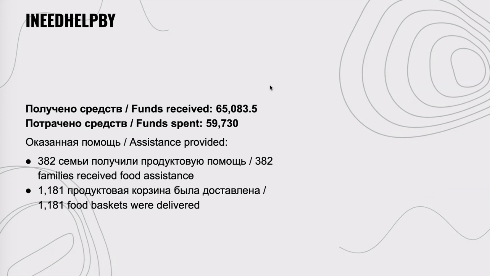- INeedHelpBY: получено — 65 083,5 евро, потрачено — 59 730 евро