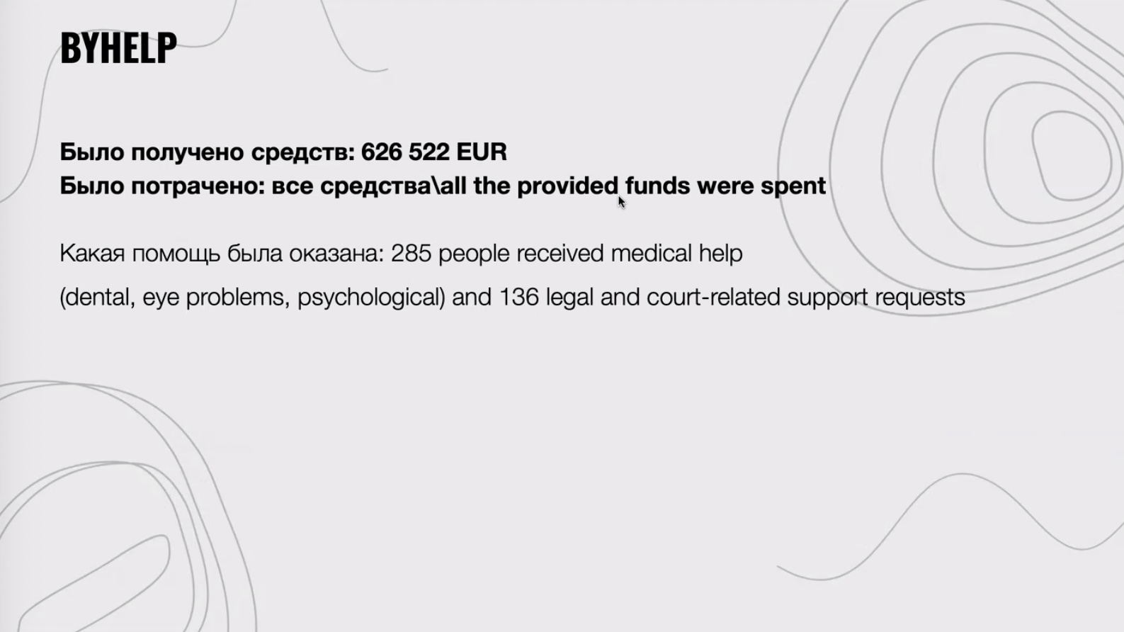 - ByHelp: получено — 626 522 евро, потрачено — 626 522 евро