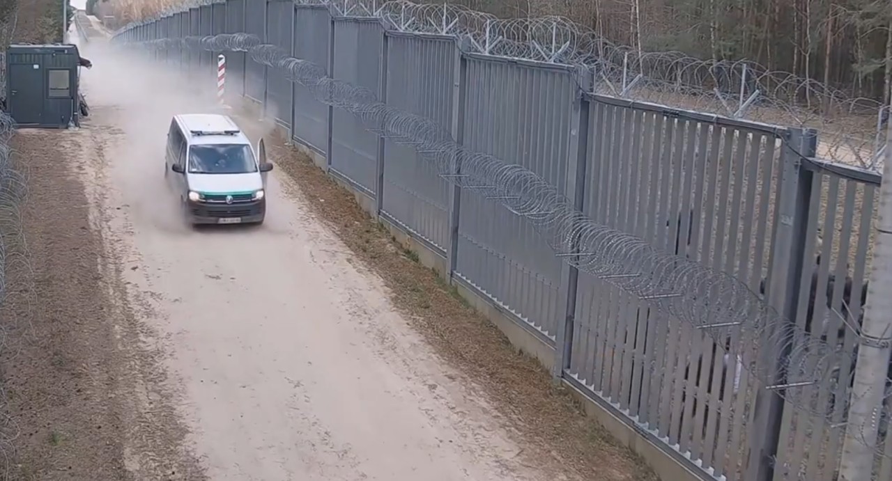 Польская пограничная служба также опубликовала видео с границы. На нем группа мигрантов на беларусской стороне пытается распилить забор, рядом стоит мужчина в камуфляжной форме в маске. Когда к забору подъезжает автомобиль польских пограничников, в него бросают камни.
