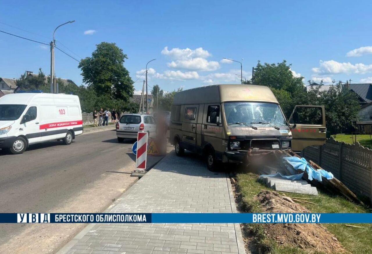 В Бресте микроавтобус с отказавшими тормозами столкнулся с мотоциклом и легковушкой, выехал на тротуар и сбил пешехода, сообщает УВД Брестской области.