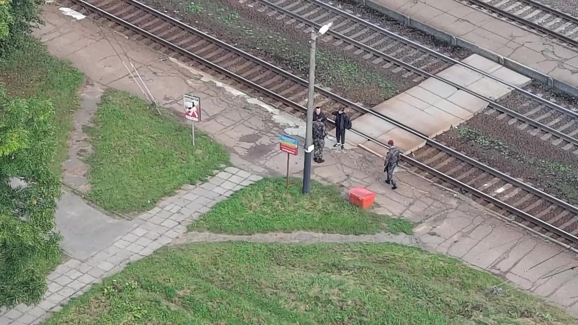 На опубликованных кадрах видно, что люди переходят через железнодорожные пути в неустановленном месте, чтобы попасть на платформу остановочного пункта. Маршрут, судя по всему, используется активно, так как видна хорошо натоптанная тропинка. Затем к людям уже на платформе подходят силовики, чтобы, судя по всему, привлечь нарушителей к ответственности.