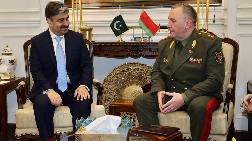 Как сообщили в Минобороны Беларуси, в ходе переговоров обсуждались вопросы развития отношений в военной сфере, а также отдельно — аспекты развития торгово-экономического сотрудничества. Например, взаимодействие беларусского автопрома с Пакистаном, в том числе поставки большегрузных самосвалов и открытие прямого авиасообщения.