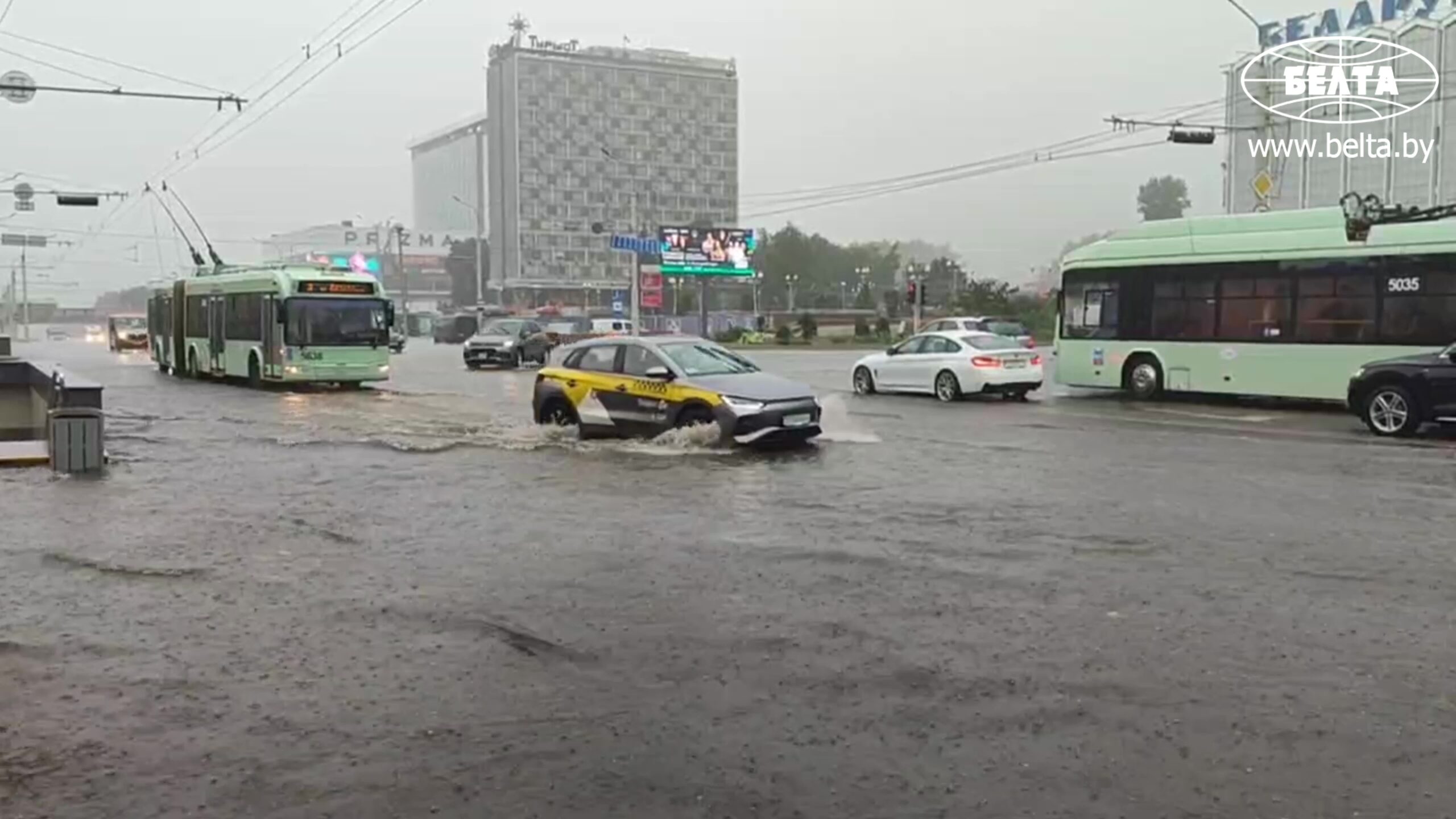 Минск снова накрыло ливнем. В столице отмечаются многочисленные подтопления.