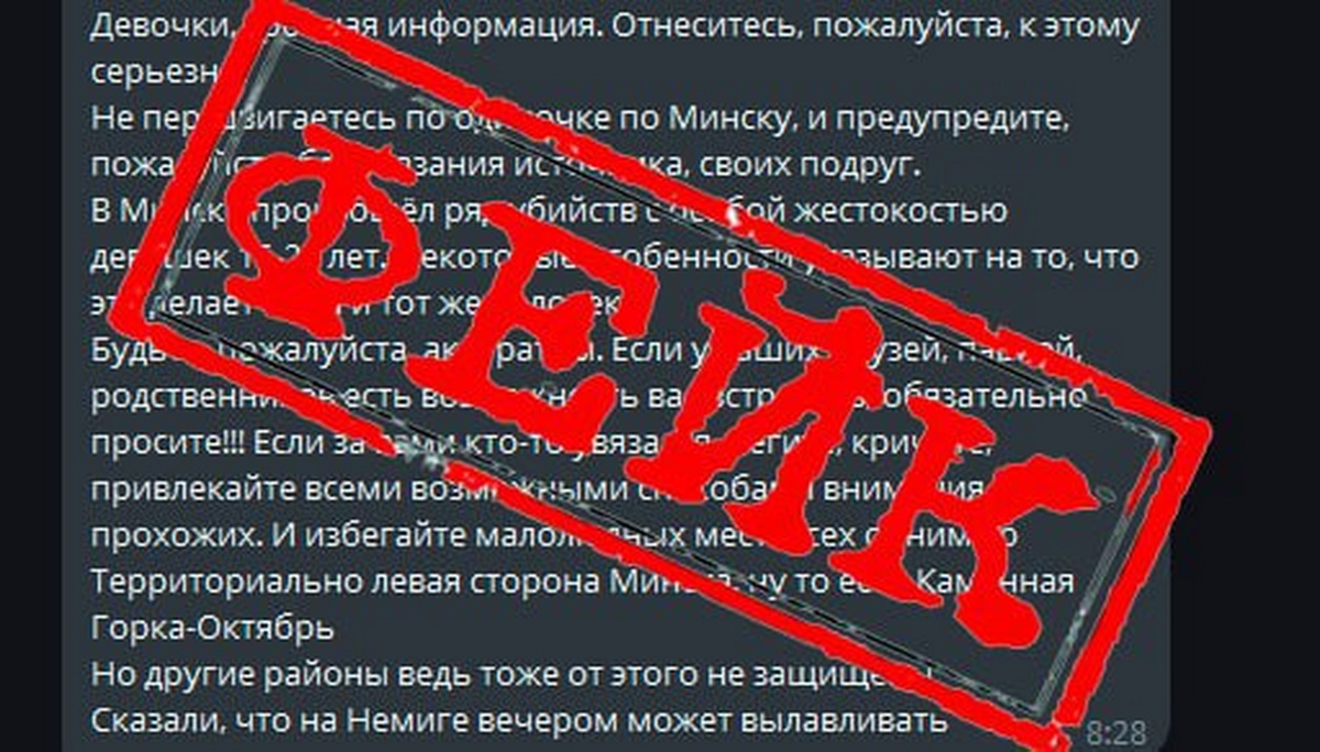 ГУВД Мингорисполкома официально опровергло информацию о появлении маньяка в беларусской столице. Она распространяется в интернете. Фейк милиционеры обнаружили во время мониторинга.